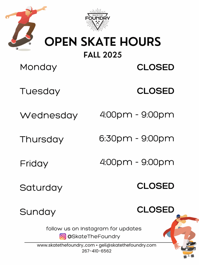 - If you’re interested in learning more about Skate The Foundry’s skateboarding programs, please check out our program details or contact us today. We would be happy to answer any questions you have and help you get started.